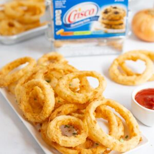 - HEAT oven to 350°F. Melt 4 Tbsp. shortening in large skillet over medium heat. Add onion slices; cook until golden brown.