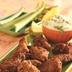 - Coat the chicken wings in sauces and add carrot sticks and celery sticks.